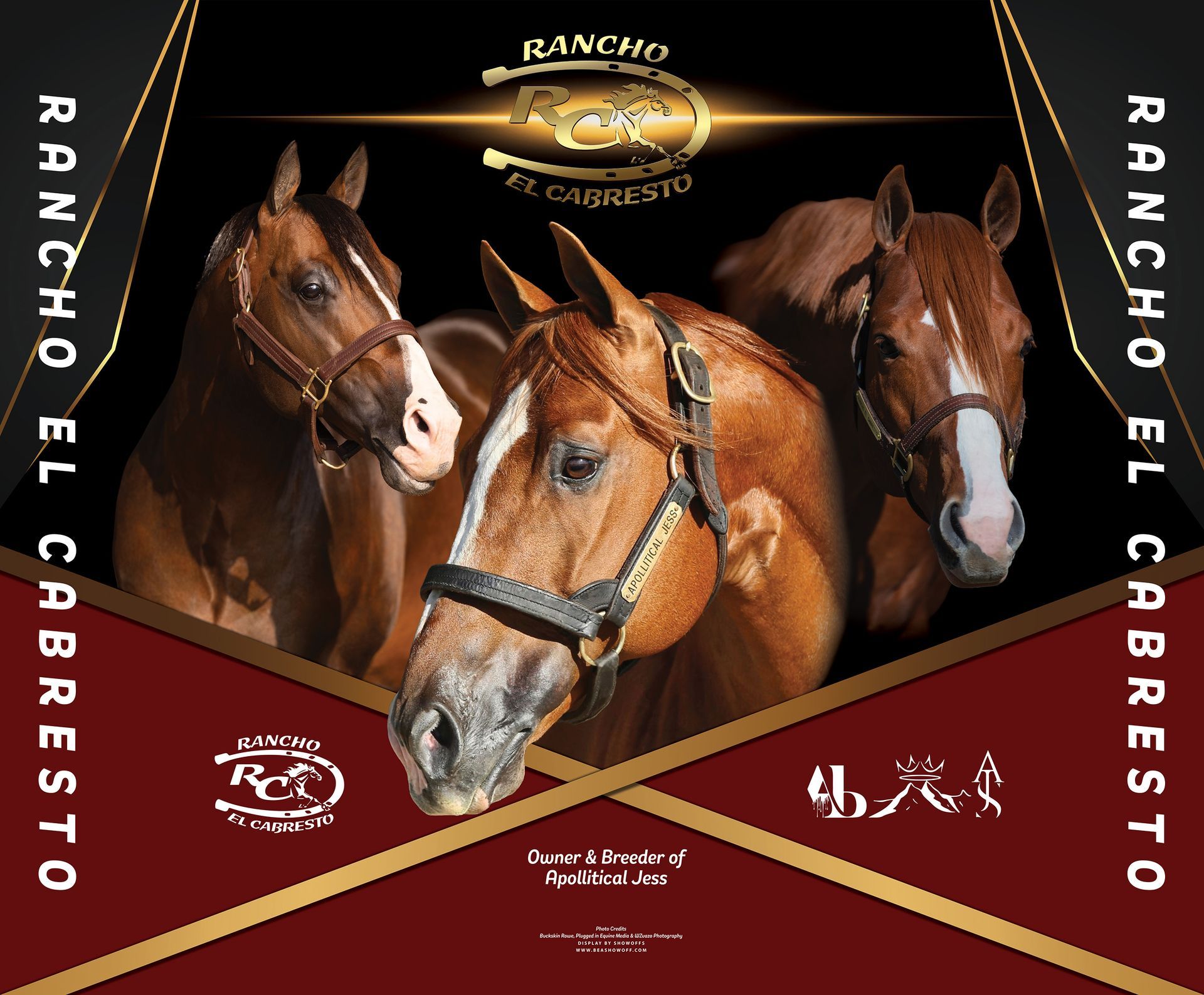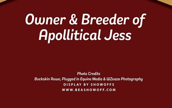 - Logo to the left area with Owner & Breeder of Apollitical Jess placed center.