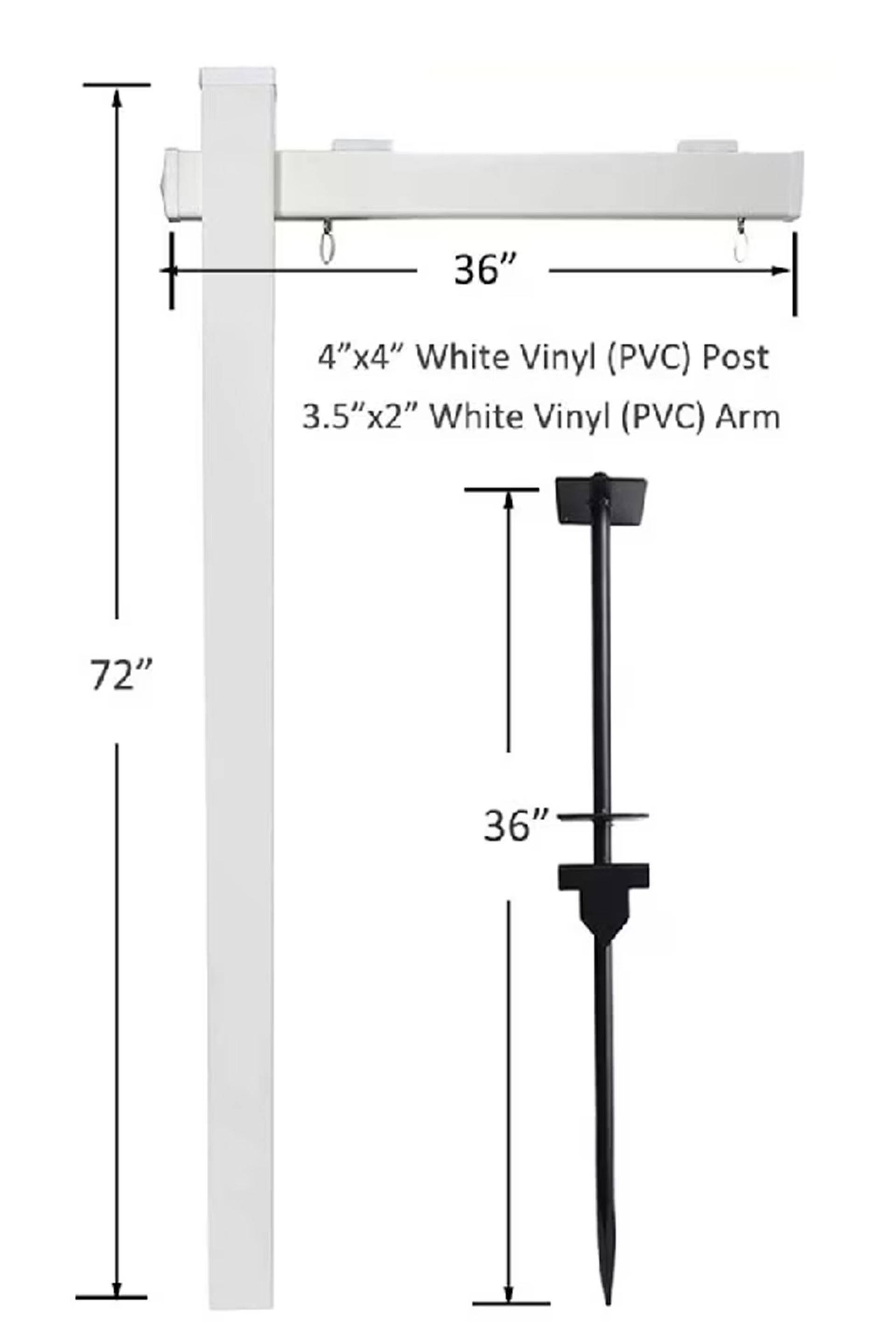 Constructed of high grade PVC vinyl, the port and arm will not peel, pit, rot, blister, warp, crack or consumed by bugs/insects, so it will last for years outdoors. Setup is quick and easy and includes everything required for assembly minus a hammer that is needed to drive the stake into the ground.
