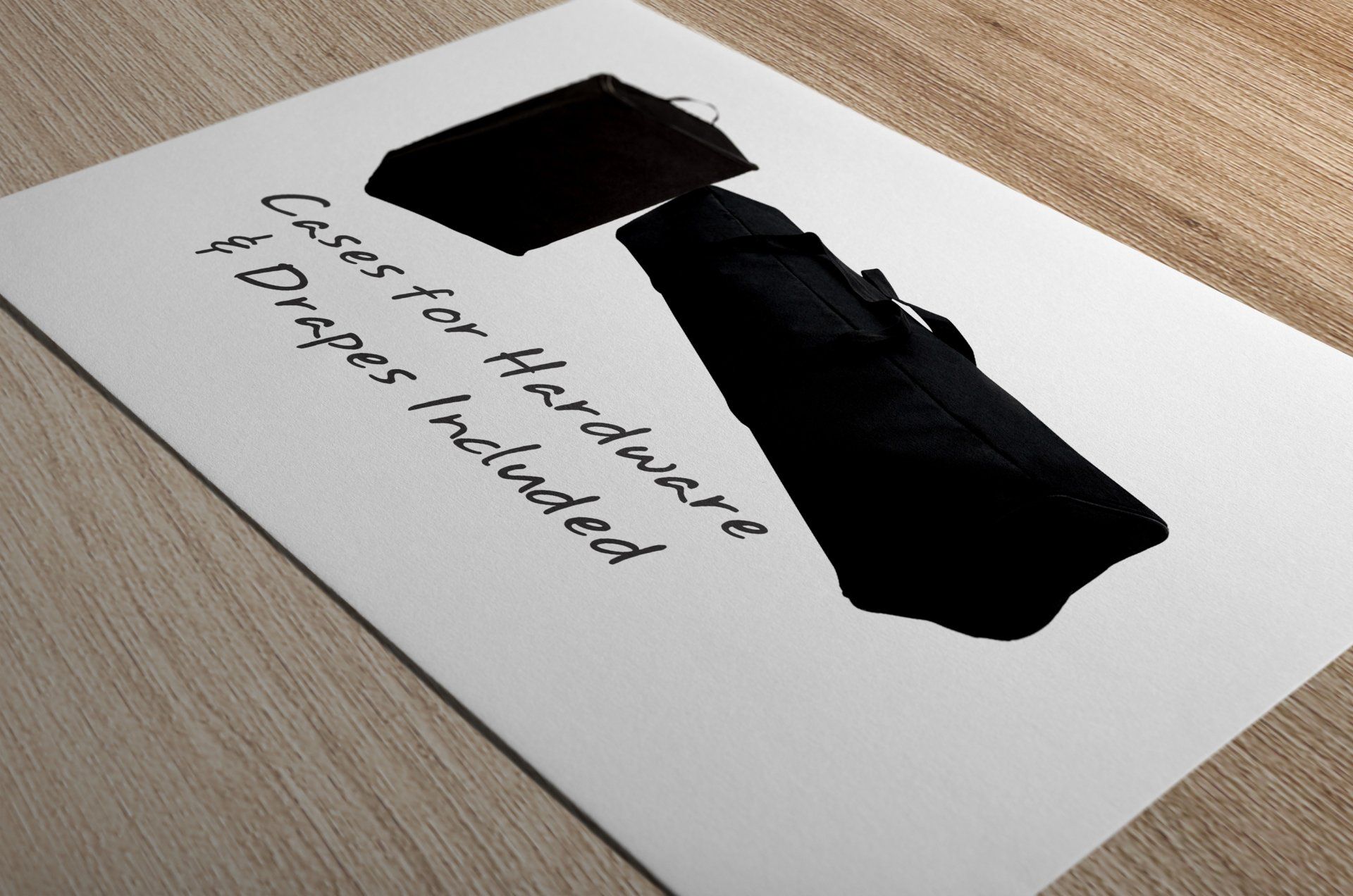 These packages includes Drapes and all brackets needed to setup as 10' or 12', using Curtain Helper Brackets as standard or compact framework with or without HALCO Velcro hanging options.